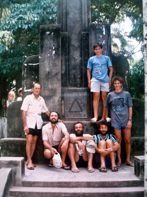 Antônio Luiz Cella com os filhos Vitório, Plinio, Enos, Ir. Sadi e Daltro. Ao fundo, Suelen e sua prima Ester - 1990